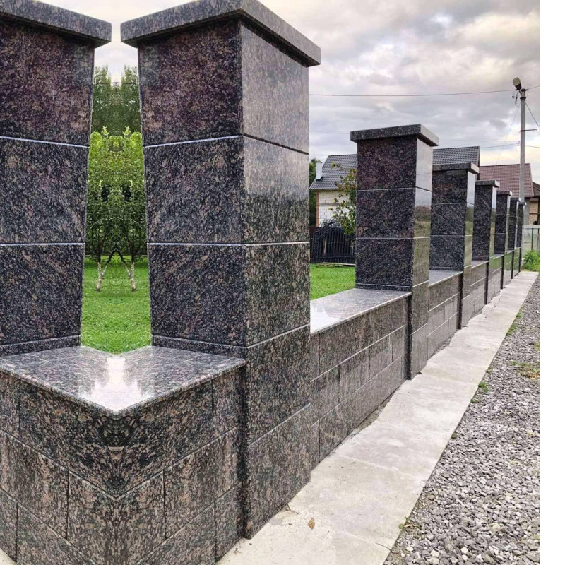 Граніт Леопард для облицювання паркану. Фото №0501. Гарний забор із натрурального коричневого граніту.